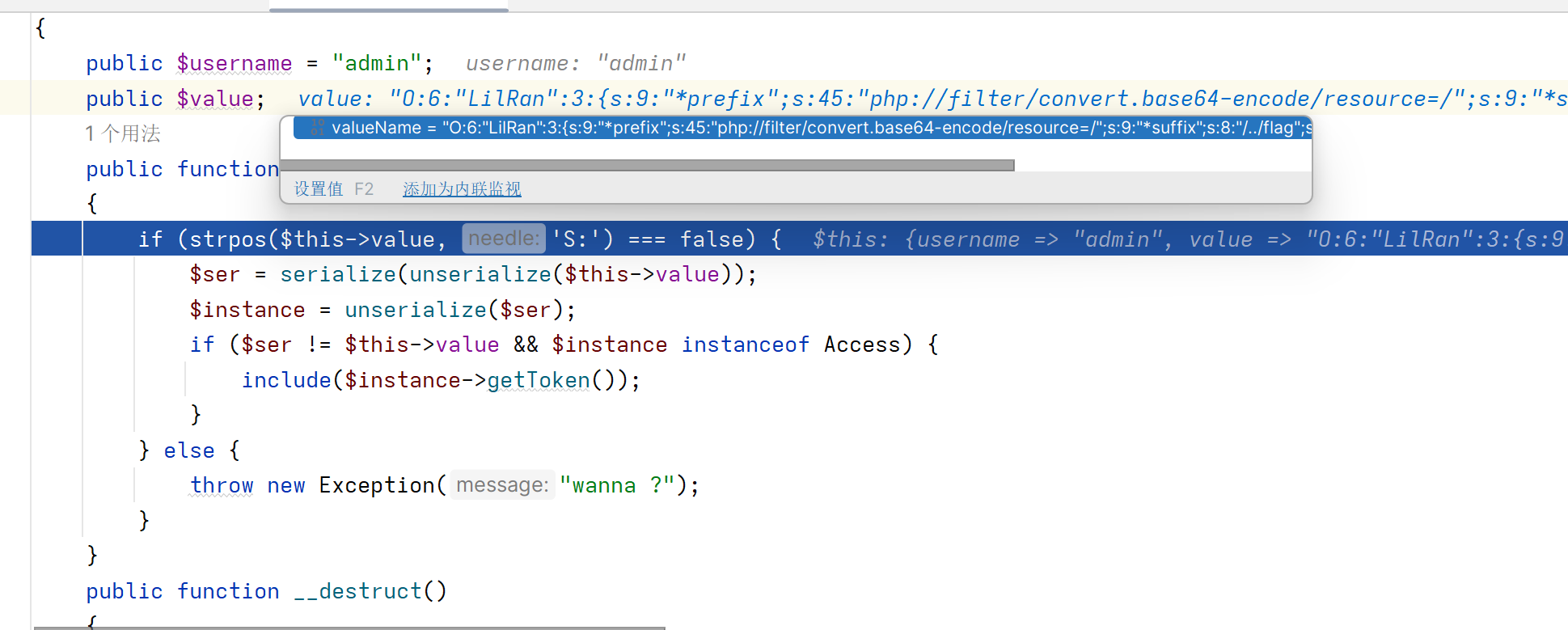 实际上我现在还是没有搞明白,这里替换了,那if (strpos($this->value, 'S:') === false)这一条是怎么过的???好像是把最后一个括号去掉的,不对这是绕过 gc 的。