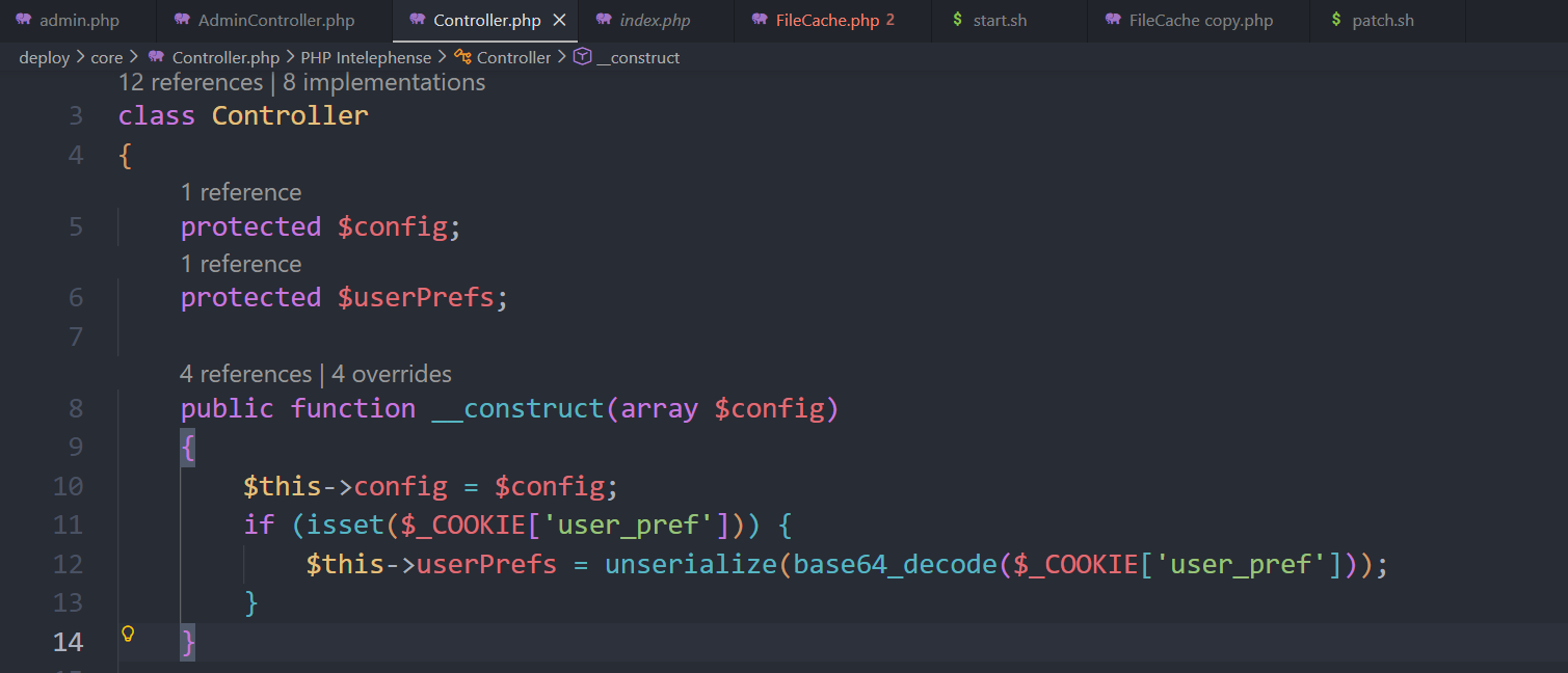 Controller.php 有反序列化,且 cookie 的user_pref 参数可控。